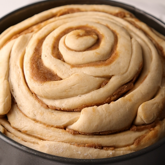 Just like normal cinnamon rolls the dough is cut into strips but instead they are rolled into one another to create a giant cinnamon roll. Placed onto of the caramel pecan layer, the dough is baked until golden and will risen. The pan is then flipped allowing the butter pecan topping to melt into each roll of dough.